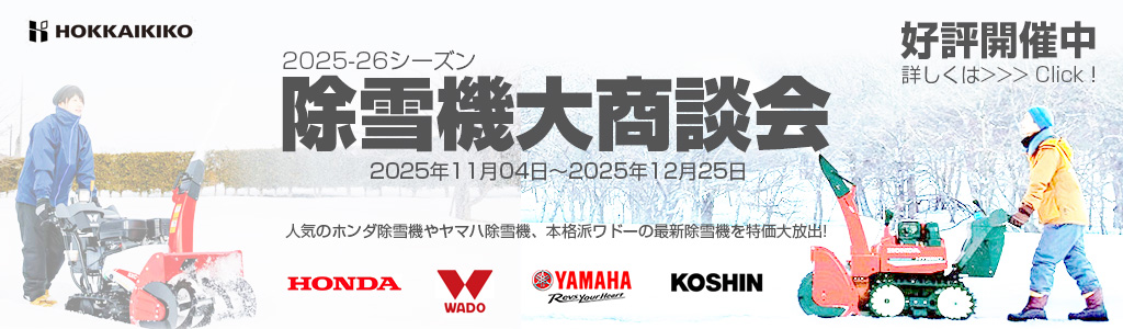 | 2025.12.01 ラジオCM放送中! 『 除雪機大商談会』 好評開催中! 中古除雪機もバーゲン特価中。 |